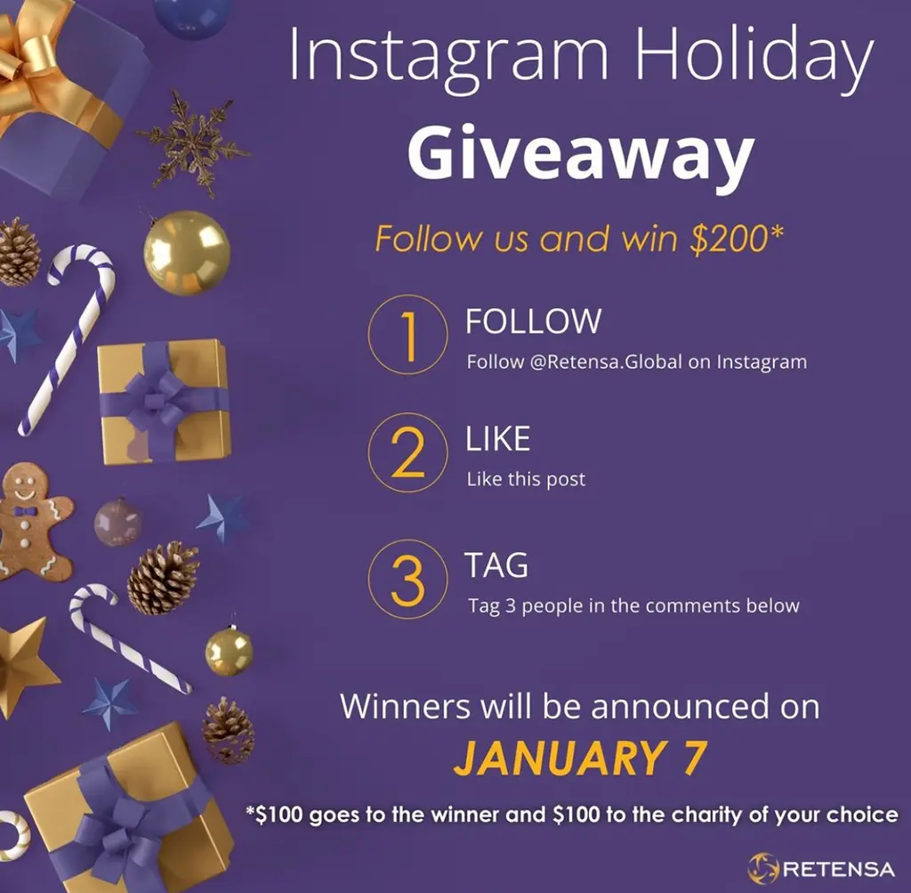 To spread holiday cheer this season, Retensa hosted a better Instagram giveaway: WIN $100 for YOU + $100 for the CHARITY of your choice Since this is a time of gratitude and giving, we wanted to show how grateful we are to all of you with this giveaway. We are thrilled to announce the Retensa 2021 Charity Giveaway winners on Instagram @Retensa.Global. This was a very special share appreciation event where participants were asked to appreciate 3 people whose support/work/friendship they valued the most last year. CONGRATULATIONS to our winners. We are happy for the winners and everyone who will benefit from those non-profit’s services. Employee recognition is the key driver of talent management for the modern workforce. Continue to recognize each other, share you vision for our planet, and support one another to be the change they want to see in the world. We thank you for making Retensa the world’s employee retention experts. The grand prize winner received: $100 Gift Card PLUS $100 donation from Retensa on your behalf to the charity of your choice A congratulatory shoutout on Retensa’s social media to highlight your contribution FOLLOW @Retensa.Global on Instagram to participate in the next giveaway.