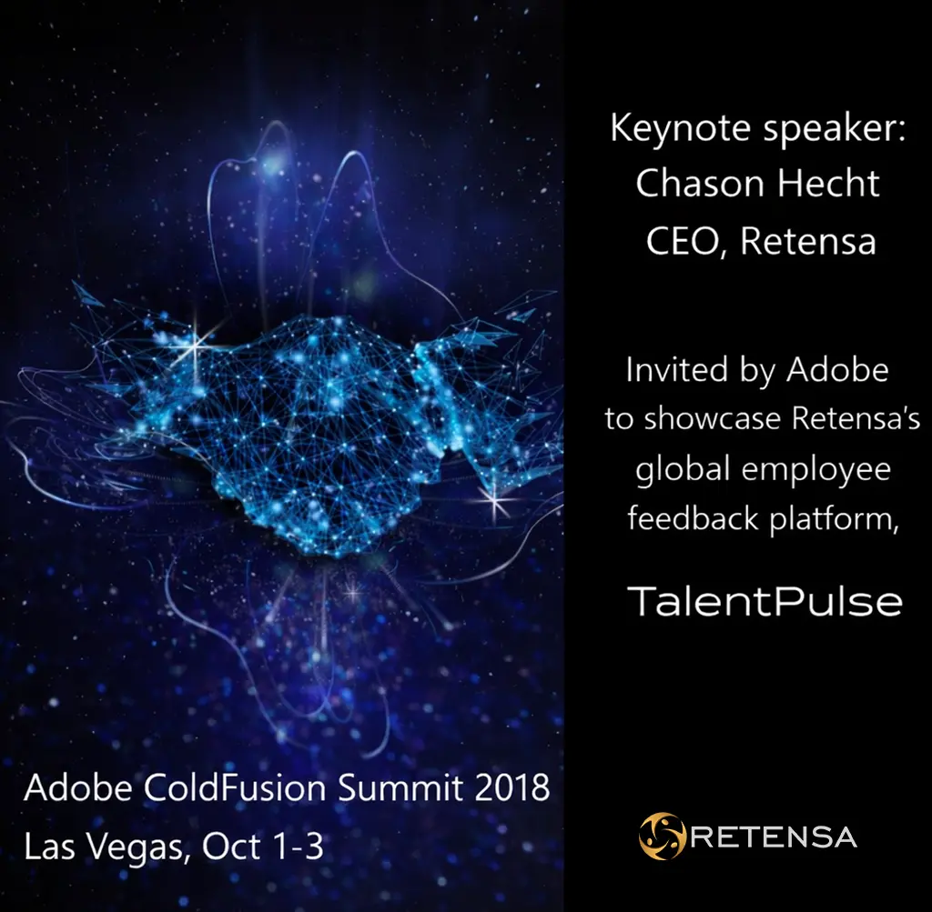 Chason Hecht, the founder and CEO of Retensa, is invited as a keynote speaker at the Adobe ColdFusion Summit 2018, held in Las Vegas between October 1 and 3. Chason was selected because the Adobe technologies Retensa uses are a distinct advantage in security, scalability, and accelerated development of Retensa’s global SaaS platform, TalentPulse. He will showcase the software and advantages in using Adobe’s architecture to deploy in over 50 countries and 12 languages. From the moment TalentPulse was envisioned over a decade ago, a powerful cross-platform architecture was needed to deliver across any device that would be in any employee’s hands. Could we create something beautiful, yet practical?Easy to use, yet robust?Scalable, yet secure? How can we address today’s needs while preparing for tomorrow’s challenges? Adobe’s ColdFusion server platforms were the answer, and Retensa quickly established its software as a case study in the SaaS industry. In October, Chason will show the world why. And you can witness it first hand. If your company’s software team uses Adobe ColdFusion technologies, share with them, and they can come as Retensa’s guest, with a DISCOUNT Target Audience: Software Directors, Project Managers, Developers, and Engineers using Adobe ColdFusion technology Sign up using promo code Retensa to get $150 off the registration fee at the Adobe ColdFusion Summit 2018. Register here. Find Chason and he will buy you a drink! Come join us in Las Vegas!