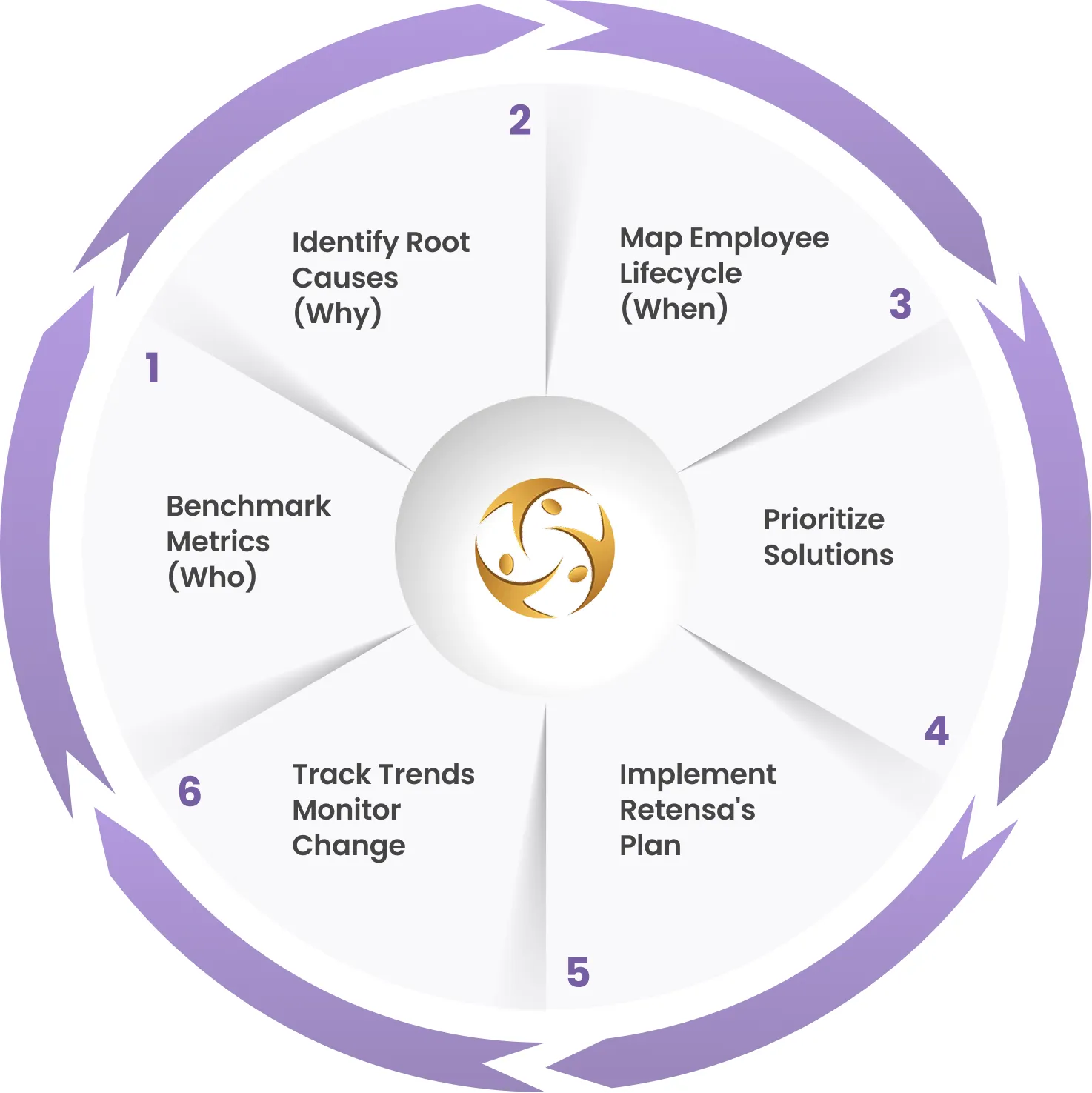Retensa analyzes the entire employee experience to uncover where, why, and when turnover occurs, and the real reasons behind it. Then you get real-world solutions tested for results in the order they succeed.